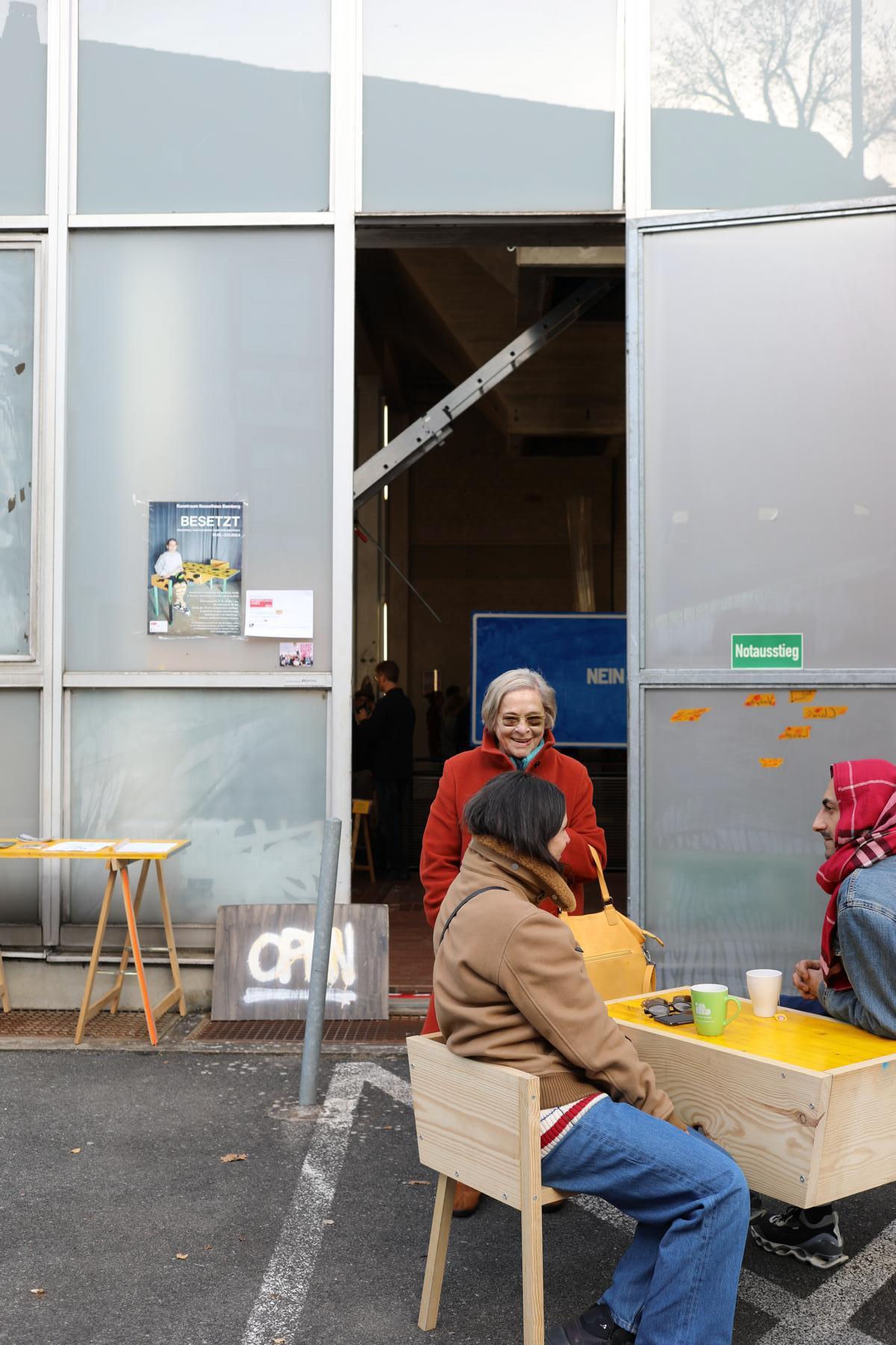 Im Oktober 2024 versammeln David Luis Grimm und Mirko Mielke Beiträge aus ihrem direkten Umfeld, die in inhaltlichem Zusammenhang mit ihrer eigenen Arbeitsweise stehen. Unterstützt von der Verbindungslinien-Förderung des BBK Bayern entschlossen die beiden Künstler ihre begonnene Zusammenarbeit für ein Kommunikationsmöbel auszuweiten. Der Austausch zwischen Künstler*innen mit Bezug zu Bamberg und Berlin wird aus dieser Arbeit hervorgehend gestärkt und soll zu einer kontinuierlichen künstlerischen Verbindungsachse der Künstler*innen aus Bamberg und Berlin führen. Durch Kollaborationen kann die eigene Begrenztheit geöffnet werden und die Zusammenarbeit verstetigt sich. Diese Zusammenhänge werden in BESETZT sichtbar gemacht und der individuelle Möglichkeitsraum erweitert: für sich Selbst, das eigene Umfeld und vielleicht noch unbekannte Andere.