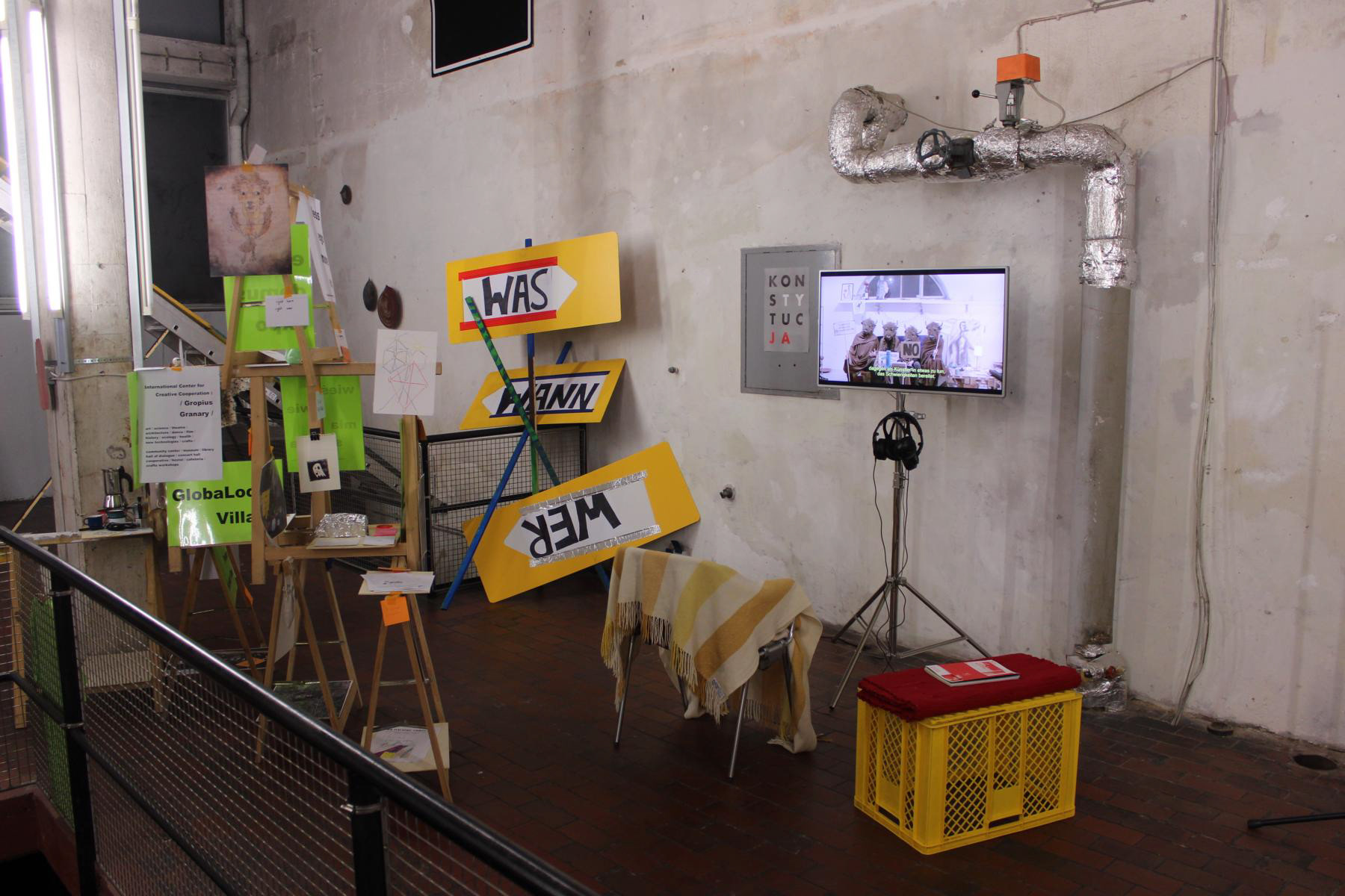 Beiträge aus dem Umfeld von David Luis Grimm & Mirko Mielke, dem künstlerischen Verbindungsbüro Berlin-Bamberg. Unter anderem von: Van Bo Le Mentzel, Jelly & Saqib Aziz, iA – Institute of Articipation, Chava Uszskurat, Siyavash Ghassemzadehgan, Warsaw Bauhaus, Lena Maria Held, Marcus Nebe, Loni Mielke, Herbert Grimm, Felix Forsbach, Produzentengalerie Mitte, Ai Wui Wui, Jan Vormann, künstlerischer Arbeitskreis für kulturellen Antrieb, Joanna Maxellon, Manuel Schubbe und weiteren + ad hoc Beiträgen aus der interessierten Öffentlichkeit.