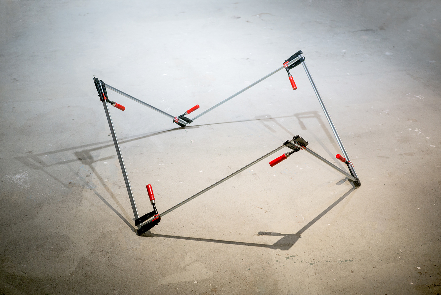 Zwingen-Quadratur, 2017 6 Schraubzwingen 180x180x72 cm